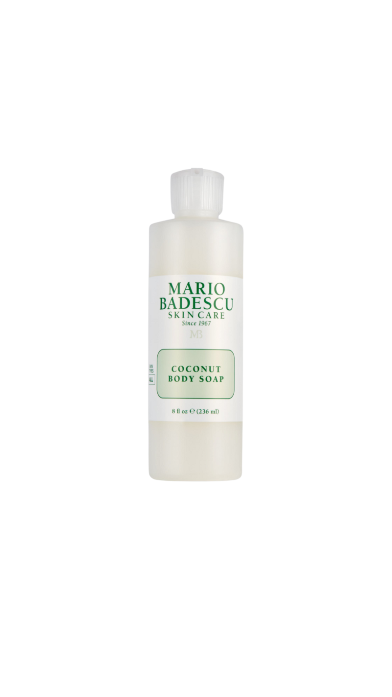Beneficios de los ingredientes: El Lactobacillus, un probiótico común en el cuidado de la piel, ayuda a fortalecer la barrera cutánea induciendo un escudo protector contra las bacterias dañinas, disminuyendo la inflamación y proporcionando alivio instantáneo de la picazón y el enrojecimiento. El extracto de salvado de arroz, un ingrediente estrella en muchos productos de cuidado de la piel del este asiático, promueve la microcirculación, descongestiona los poros e hidrata la piel de forma abundante, además de ayudar a reducir la apariencia del envejecimiento prematuro. La jojoba, un ingrediente natural mundialmente conocido, limpia, hidrata y calma la piel sensible sin alterar su barrera natural. Este producto ha ganado el premio «Lo mejor en jabones corporales» de los premios Romper Pregnancy 2022. #MBSKINTIP: Haz espuma con el jabón corporal de coco en la ducha o incorpóralo a un baño para obtener una piel radiante y flexible. Luego, aplica una combinación de la crema corporal de coco y el aceite corporal de coco de Mario Badescu para un extra de hidratación sobre la piel recién lavada.